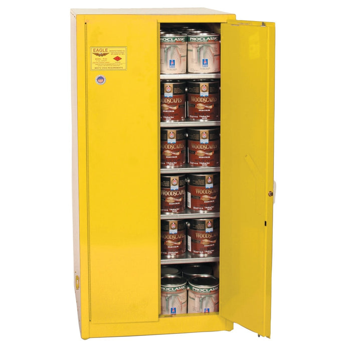 Eagle Manufacturing 96 Gallon, 5 Shelves, 2 Doors, Manual Close, Paint Safety Cabinet, Yellow - YPI62 Data Sheet: