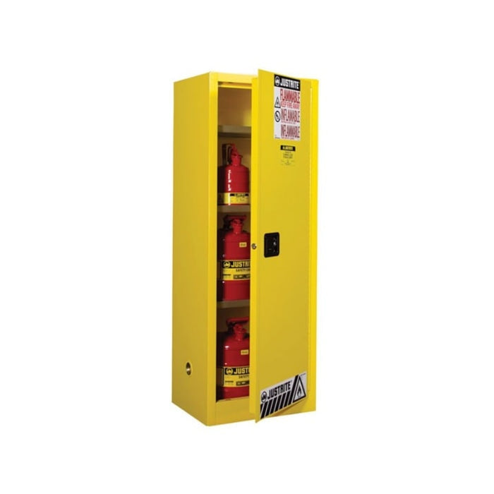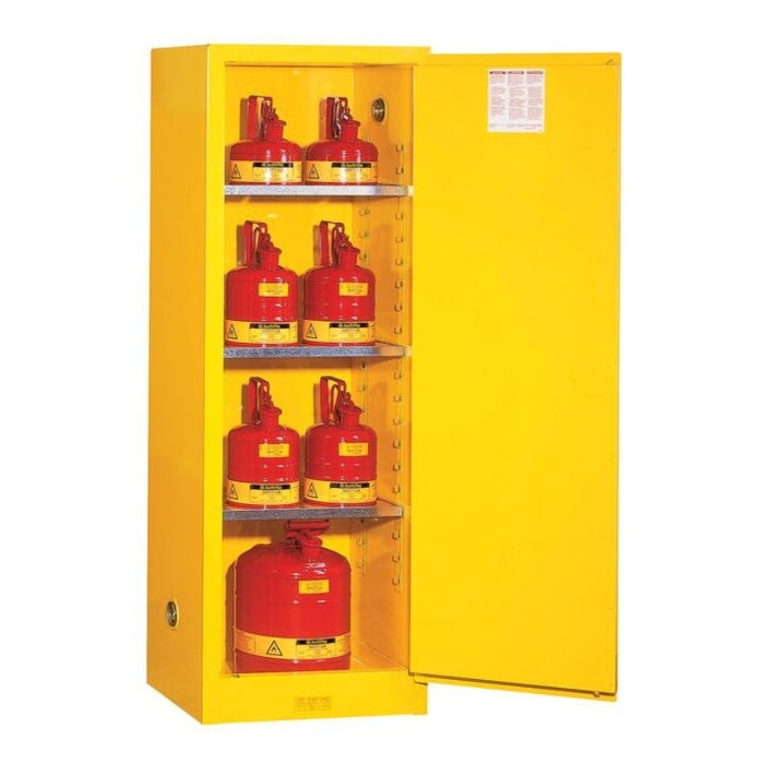 Justrite 22 Gallon, 3 Shelves, 1 Door, Manual Close, Sure-Grip EX Slimline Flammable Safety Cabinet in Yellow - 892200