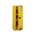 Its exterior dimensions are 65 in H x 23.25 in W x 18 in D (1651 mm H x 591 mm W x 457 mm D). These yellow cabinets can store 22 gal (83 l) of flammable liquids.