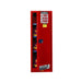 Its exterior dimensions are 65 in H x 23.25 in W x 18 in D (1651 mm H x 591 mm W x 457 mm D). These red cabinets can store 22 gal (83 L) of flammable liquids.