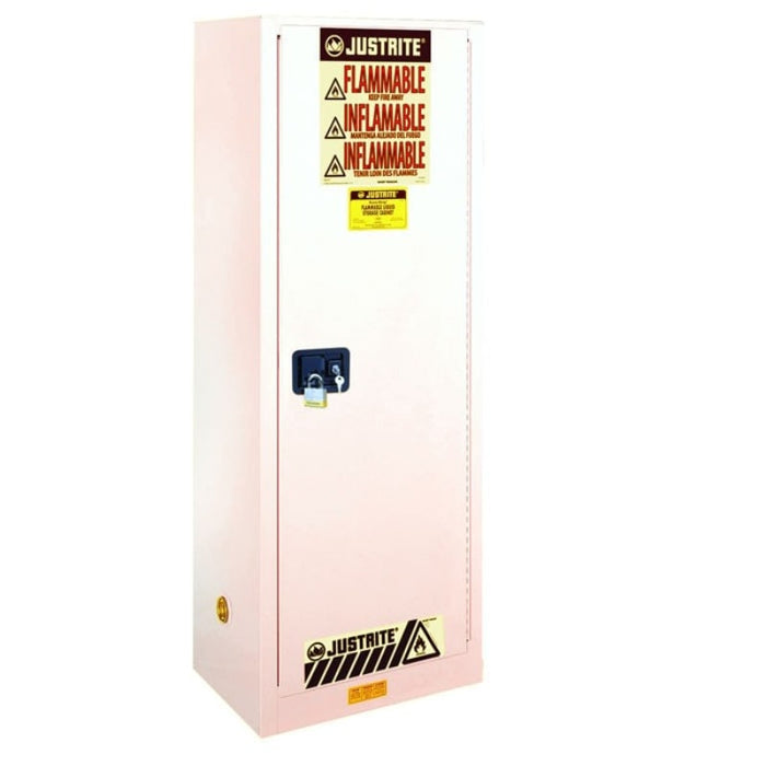 Justrite 22 Gallon, 3 Shelves, 1 Door, Self Close, Sure-Grip EX Slimline, Flammable Cabinet in White - 892225